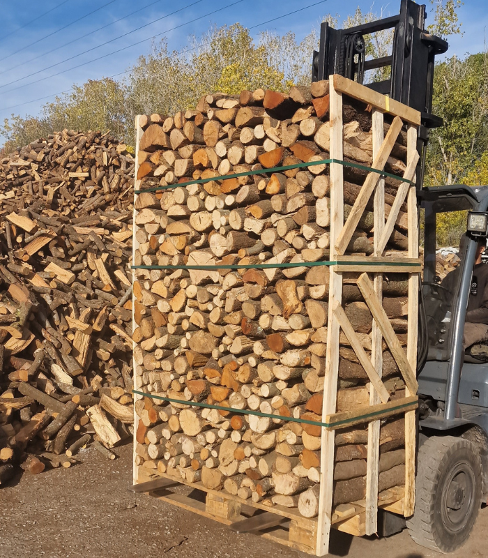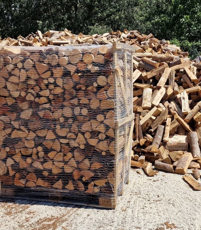 Palet de leña de encina seca 1.000 kg – troncos 40 cm